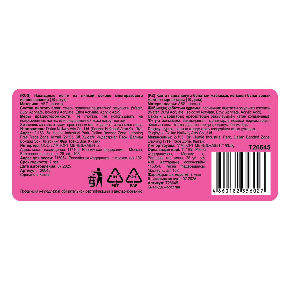 Lukky компаниясының Nail Art коллекциясынан алынған желімді жалған тырнақтары салонға бармай-ақ стильді және жылтыратылған маникюр жасауға арналған. Тегіс, жылтыр беті тырнақтарға жақсы күтім жасалған көрініс береді және мәнерлі әсер береді. Желімделген тіреуіш сенімді жабысуды және пайдалануды жеңілдетеді, ал алып тастау ыңғайлы және табиғи тырнақтарға зақым келтірмейді. 14 жастан асқандарға жарамды.