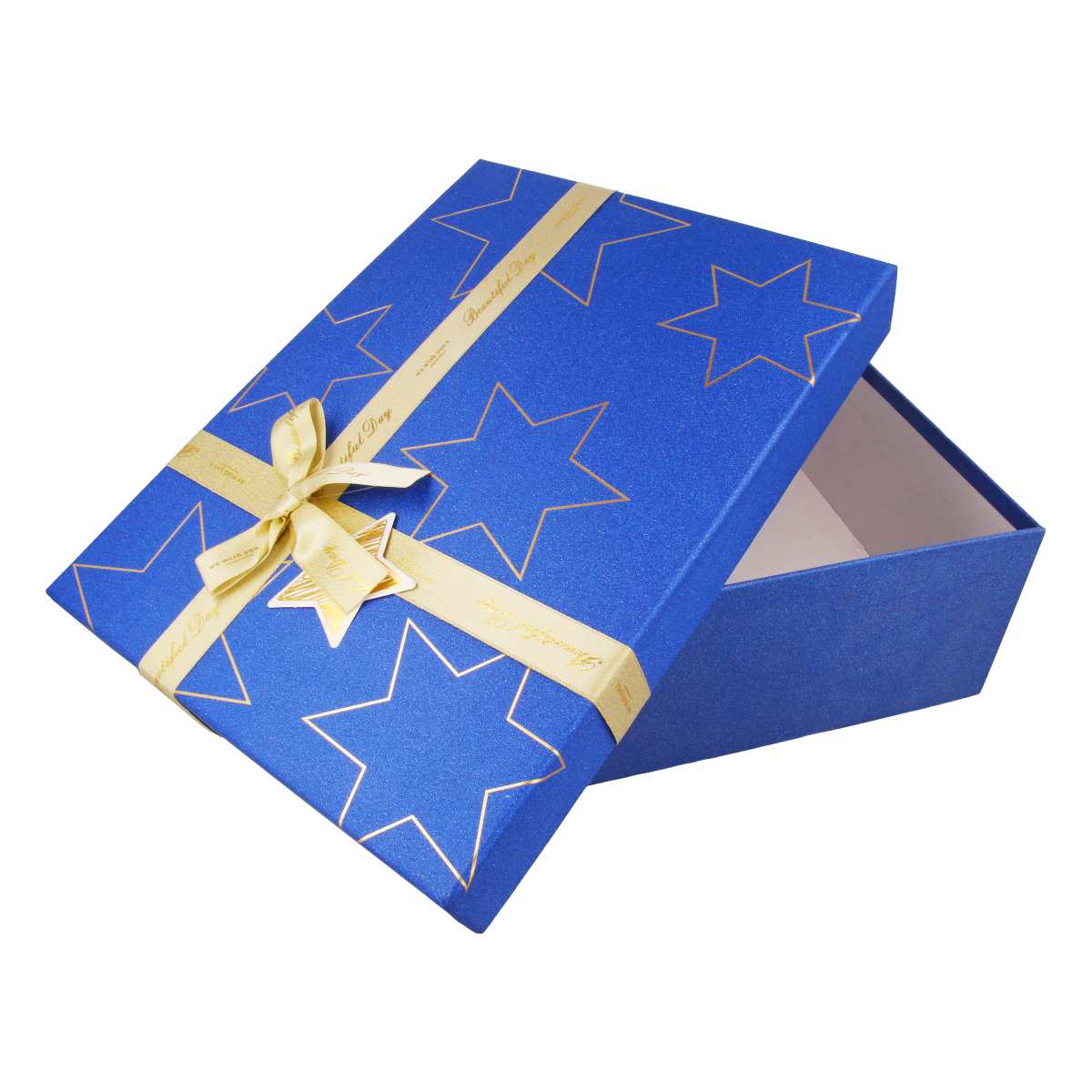 "YINGPIN" №0055 сыйлық қорабы 33.5 х 25 х 12 см с бантом и "золотым" и "серебрянным" тиснением звезды (красный, синий) NO-91306-L15/16(1)