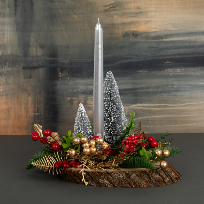 Создайте неповторимый элемент декора - яркую и необычную новогоднюю композицию на спиле со свечой.